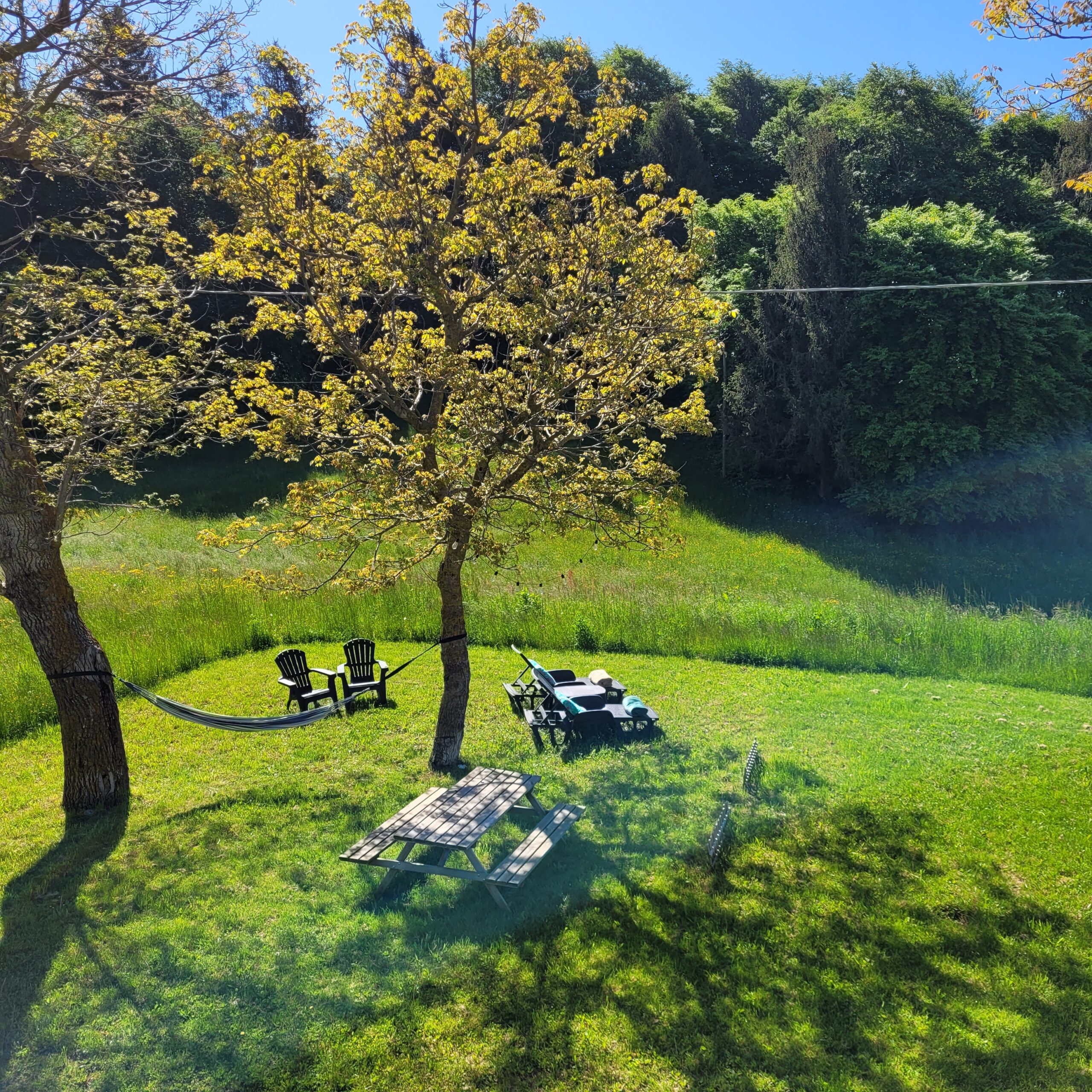 - ampio giardino, non recintato, attrezzato con tavolo, panche e barbecue per pranzi e cene all’aperto.
